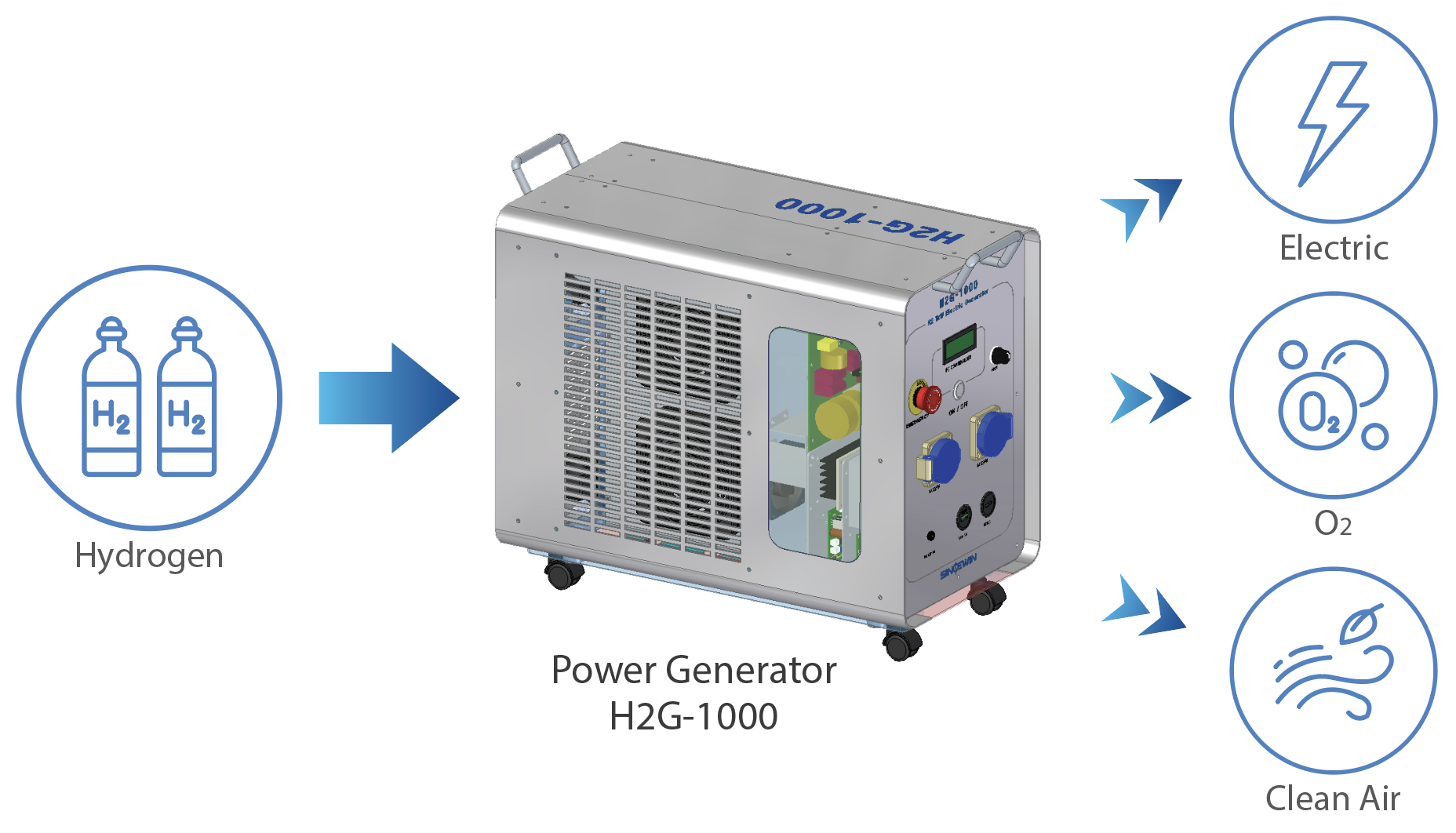 Our cutting-edge technology empowers us to design, manufacture, and test hydrogen generators that redefine industry standards. These generators are not just about producing energy; they embody a commitment to environmental responsibility. At Sincewin, we’ve harnessed the power of hydrogen (H2) fuel to create generators that are not only noise-free and vibration-free but also entirely pollution-free.