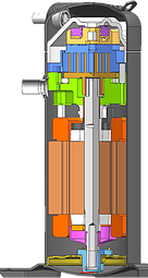 It is mainly used for high-end, high-capacity air conditioners by compressing high-temperature and high-pressure gas while two involute curve parts rotate.